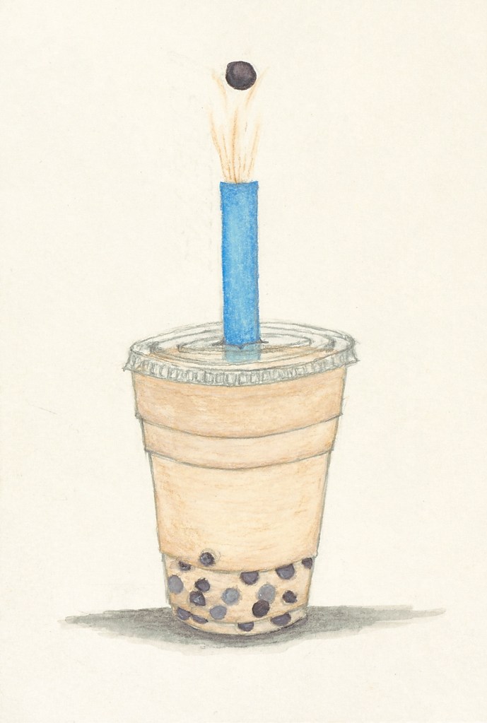 Drawn for my kind-hearted 小阿姨 (youngest maternal aunt) in Southern California, who took me in for a week while I was planning my wedding. There is a decided dearth of good bubble tea in Fresno. She treated to me one every day.